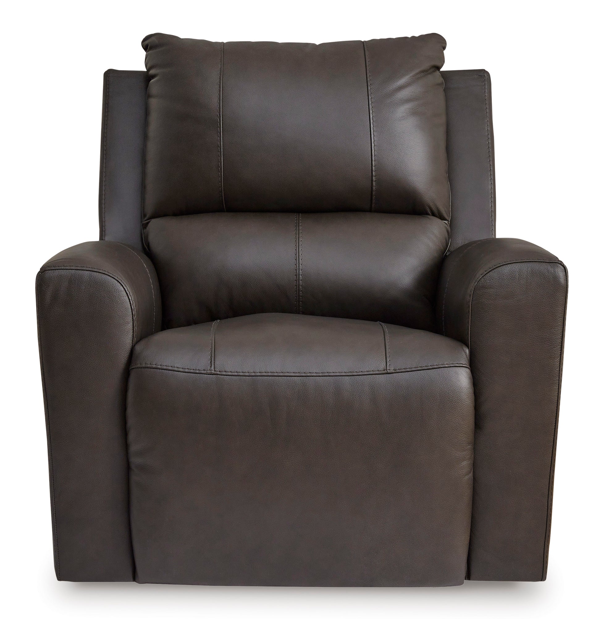 Experience modern luxury with this power recliner. The soft-to-the-touch leather and faux leather upholstery brings ultimate relaxation at a price you can afford. With sleek arms and a plush, pillowy back, the recliner merges comfort and support with a high-style design.