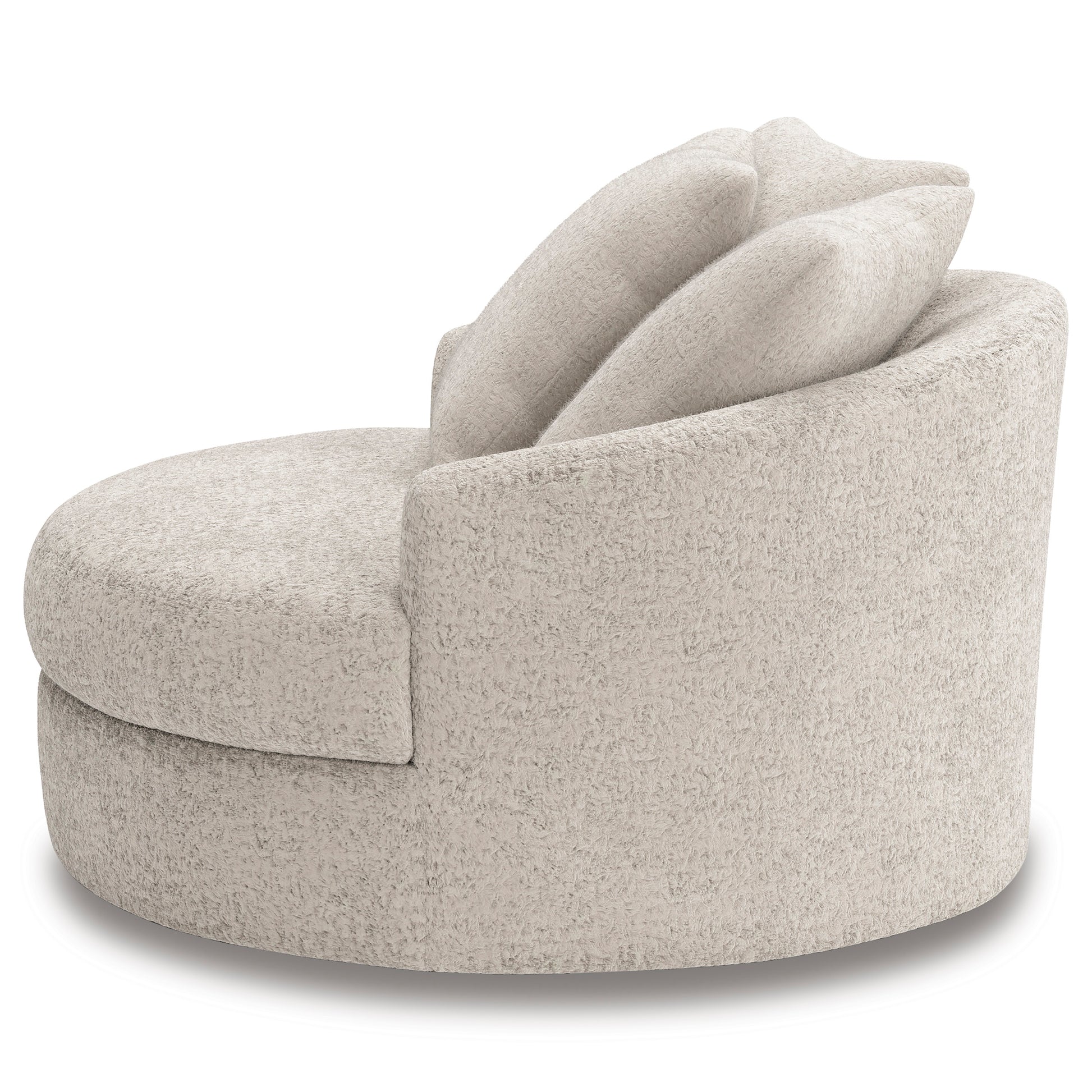 This plush oversized swivel accent chair is the ultimate spot to unwind after a long day. Its ultra soft upholstery feels luxurious against your skin, while the roomy seat and comfy throw pillows provide support in all the right places. With plenty of space to stretch out or snuggle up with loved ones, this modular piece is perfect for movie nights, game days and everything in between.