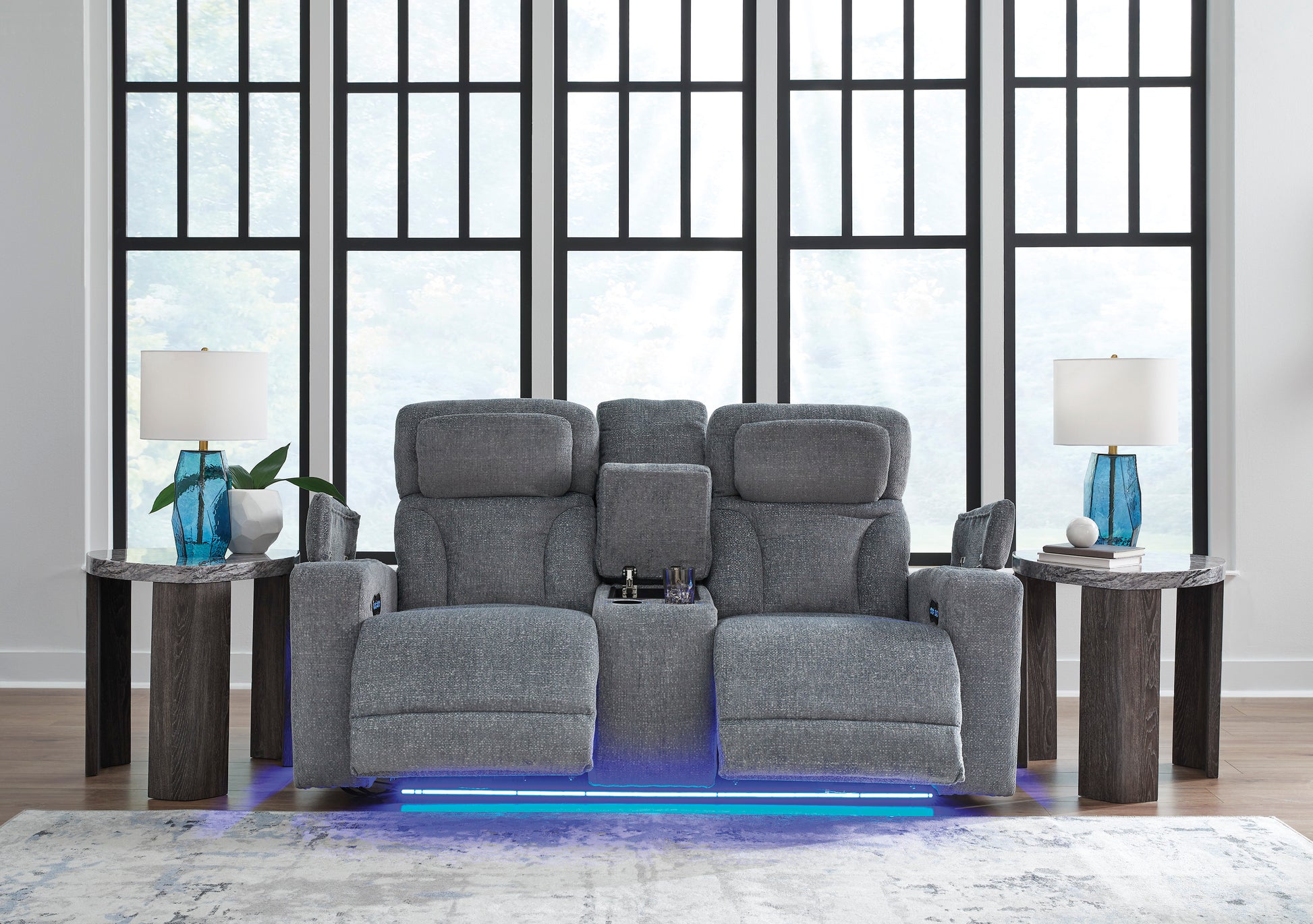 Studio Cave Pewter Power Reclining Loveseat with Adjustable Headrest